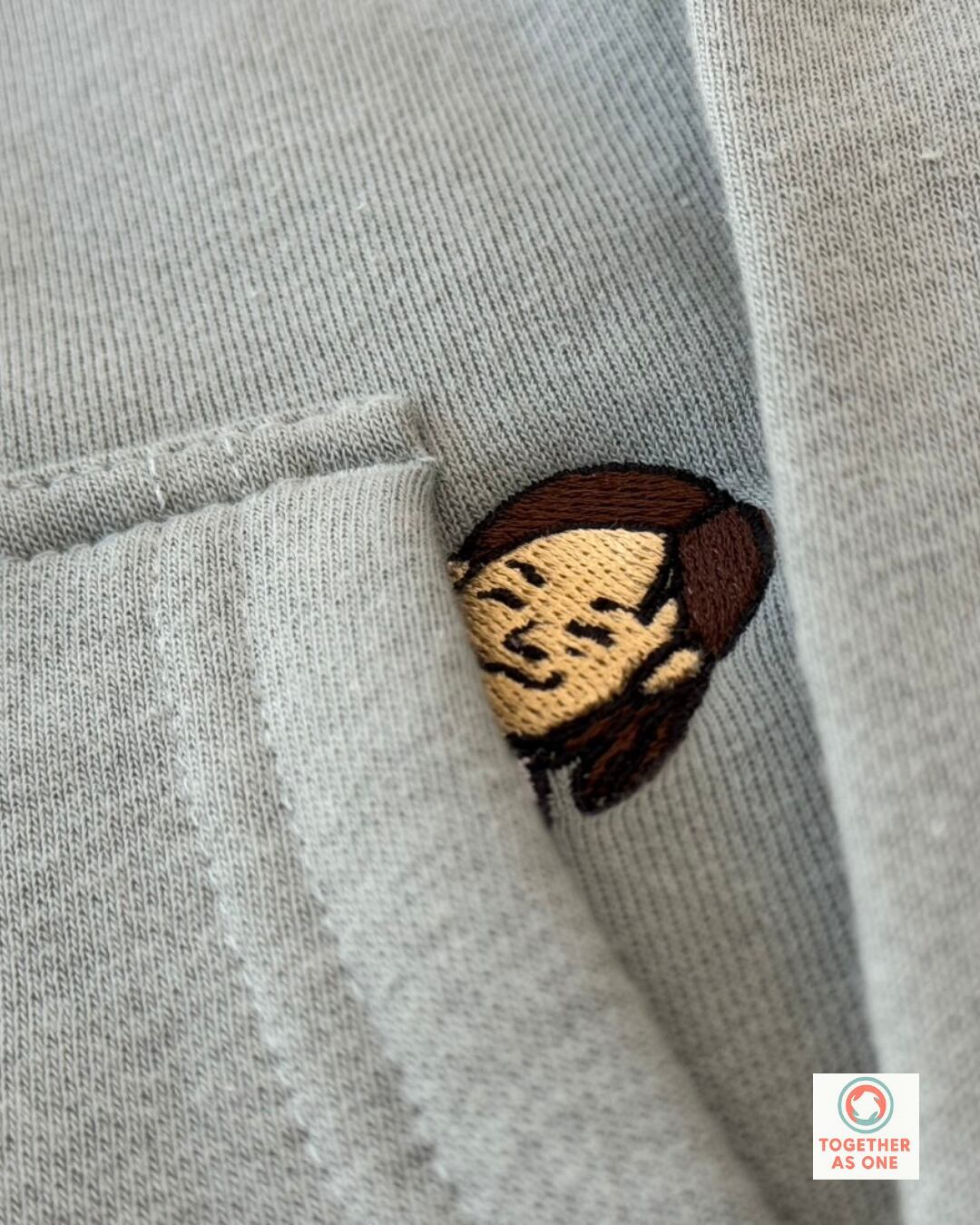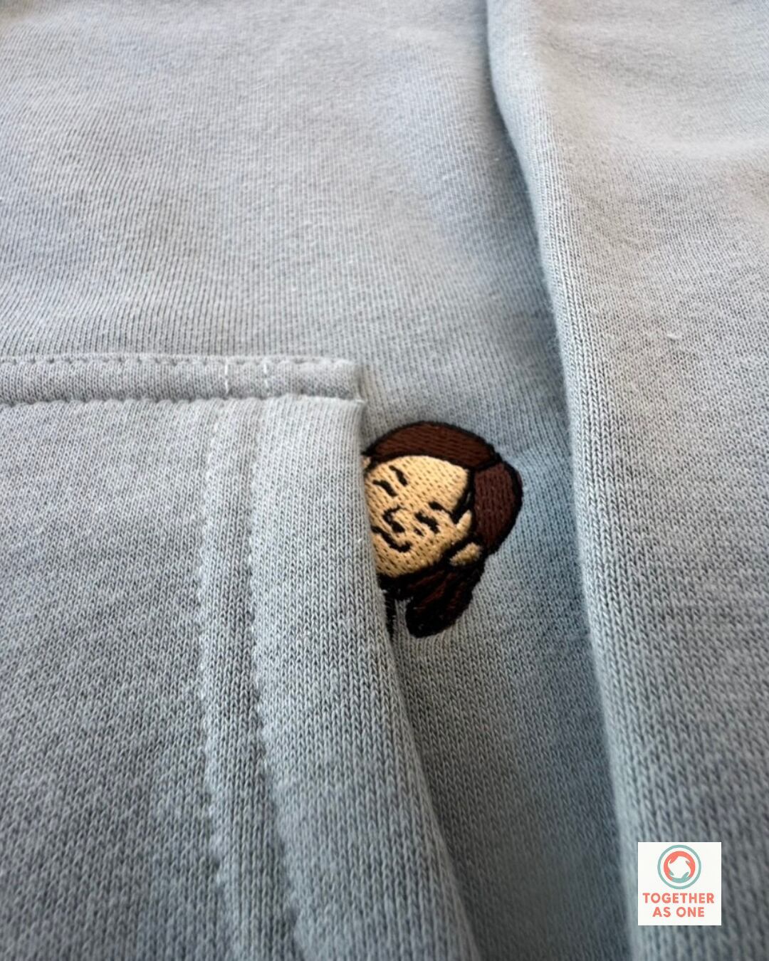 パーカーポケットから、ひょっこりの裕美キャラロゴ がポイントの、ユニセックスパーカー。